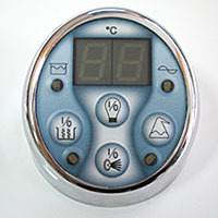 Comanda digitala ON / OFF pentru: cromoterapie, desinfectie automata, senzori de nivel, valva amestec apa - aer, reglaj intensitate aer cald, centrala electronica), afișează led pentru pornit – oprit